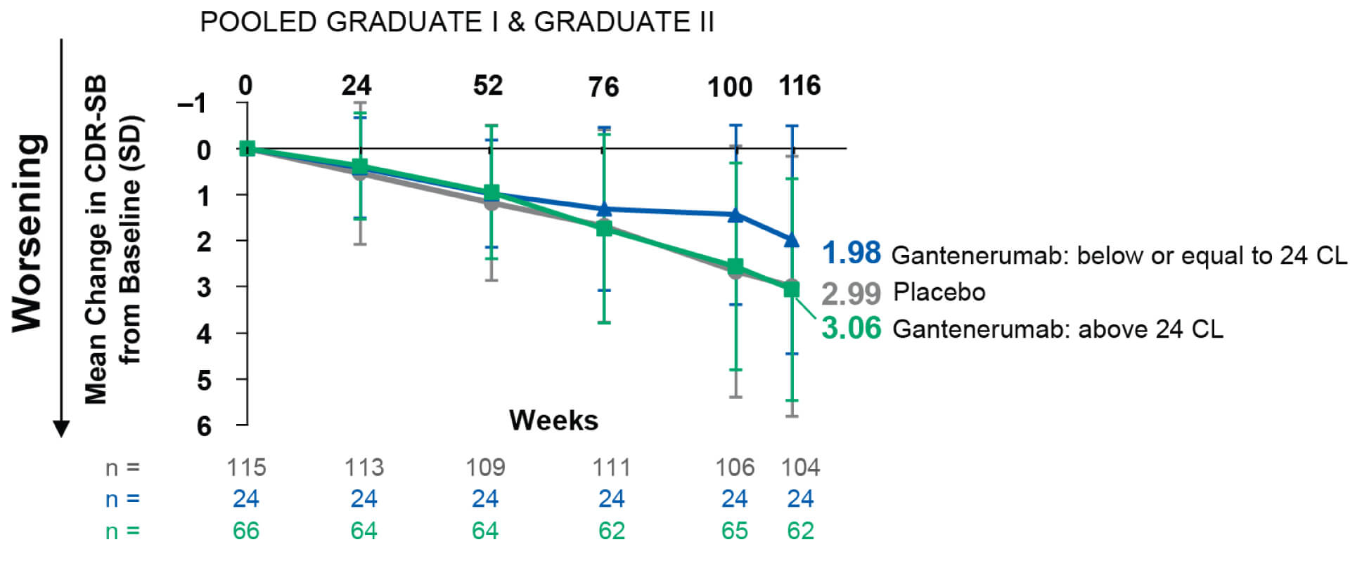 So while it would have been understandable if Roche had rounded up all its gantenerumab and consigned it to the biological waste barrels, it was still reasonable to think that gantenerumab might still work as effectively as the other antibodies if administered at high enough doses for long enough —especially if given earlier than in the Phase III trial.