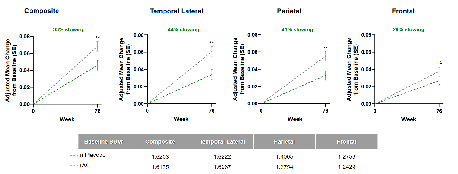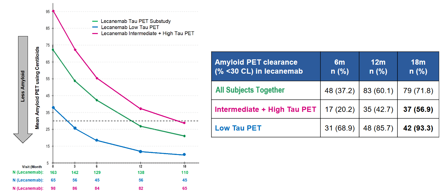 And in a separate presentation, Lilly scientists showed that even though all patients were treated with donanemab until they got their brain beta-amyloid levels down to a low goal level, speed mattered. The faster a person reached their beta-amyloid clearance goal, the more effective donanemab was at slowing cognitive function and the less they would suffer additional tau aggregate accumulation in their brains.