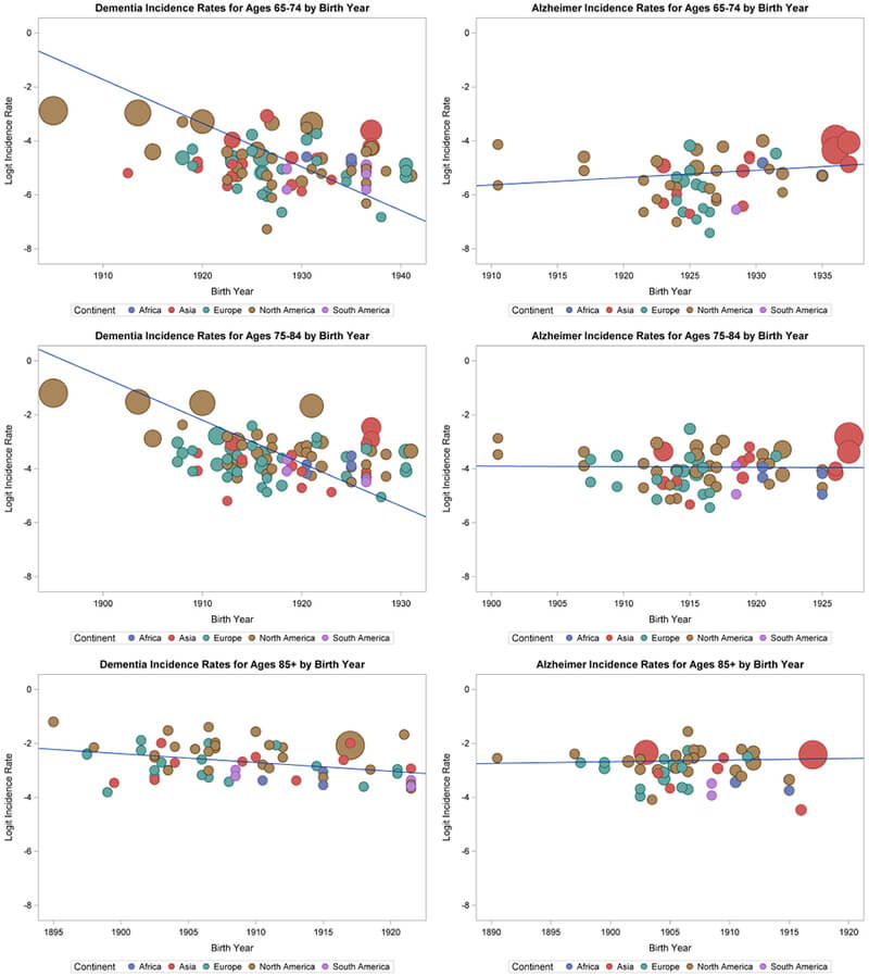 On top of that, there is evidence of an increase in new cases of early-onset Alzheimer’s, meaning the unusual cases that occur before the age of 65, according to a report from the insurance company Blue Cross Blue Shield. Walter Rocca, a neurology researcher at the Mayo Clinic, has reported the same thing. Because early-onset is uncommon, many of the studies that have looked at the trajectory of Alzheimer’s incidence over time (including the study we just cited above) have neglected to look at cases in people under the age of 65, and have therefore missed an important part of the story.