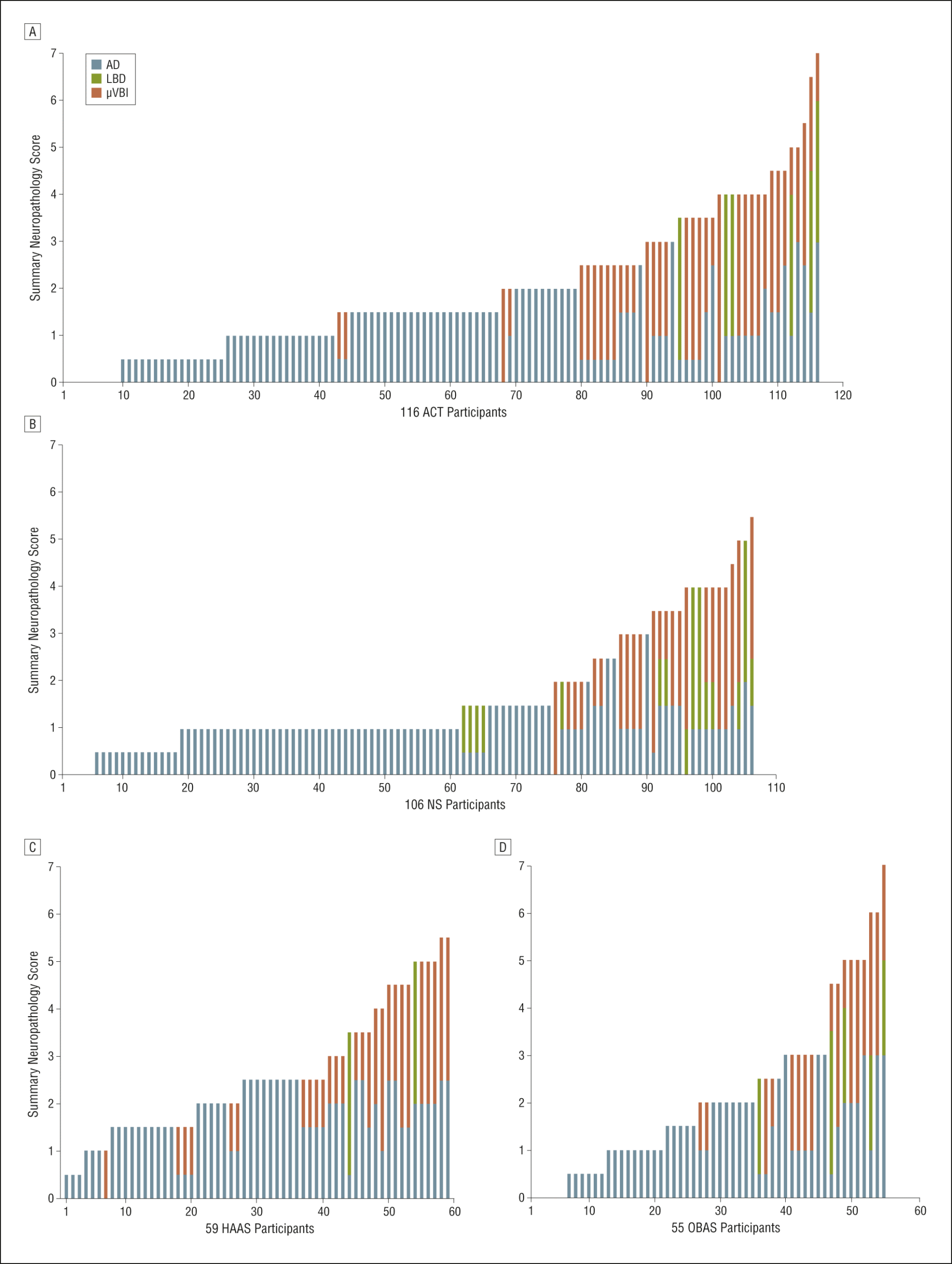 In one study, for example, researchers examined the donated brains of volunteers in the Rush Memory and Aging Project, testing them for the levels of just four kinds of aging lesions: beta-amyloid plaques, aberrant tau in the form of “tangles,” alpha-synuclein aggregates, and evidence of strokes (not including strokes that they judged to have killed the person). Moreover, they only looked for these lesions in some of the “bad neighborhoods” of the aging brain. Even with these narrow criteria, only 28.6% of the older volunteers (average age 88) who did not have dementia were free of the molecular aging damage typical of Alzheimer’s, Lewy body, or vascular dementia — and conversely and only 30% of those with dementia met the criteria for Alzheimer’s disease exclusively.