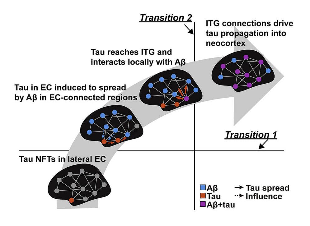 By the time a person reaches this level of cognitive impairment, such patients will also have had decades of abnormal forms of the protein tau accumulating inside the brain neurons in the medial temporal lobe and insinuating itself into the neocortex — the seat of memory and identity. This neuropathological invasion has been identified as critical in the transition to dementia as a downstream result of beta-amyloid accumulation.