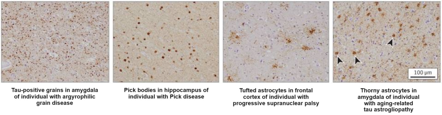 Tau twists into distinct shapes to afflict different brain cells in various neurodegenerative diseases, and evidence suggests that existing tau aggregates act as templates to seed the spread of abnormal tau from one cell to others in its network. Credit: JAMA Neurol 76(1): 101–108.