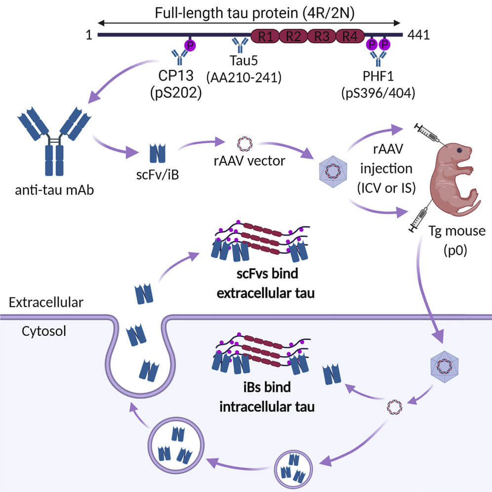 In recent years, scientists began targeting tau inside neurons using functional fragments of antibodies with key subunits that target different segments of the tau protein. When they treated animals that carry forms of mutated human tau that aggregate and drive neurodegenerative disease in humans, these antibody fragments lowered the burden of soluble aberrant tau in these animals’ brains — and the effect was almost entirely the result of clearing it from inside the neurons.