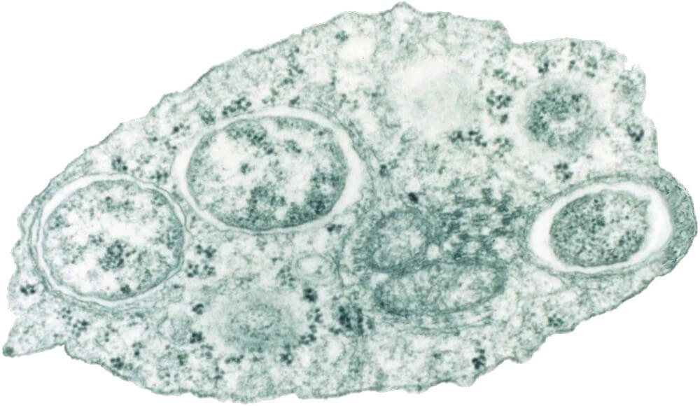 Wolbachia inside the cell of an insect. Credit: Plos Biology, 01 Mar 2004, 2(3). Distributed under Creative Commons Attribution License.