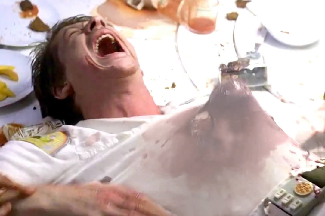 A very different case of death by offspring. Screen capture from Alien; credit 20th Century Fox.