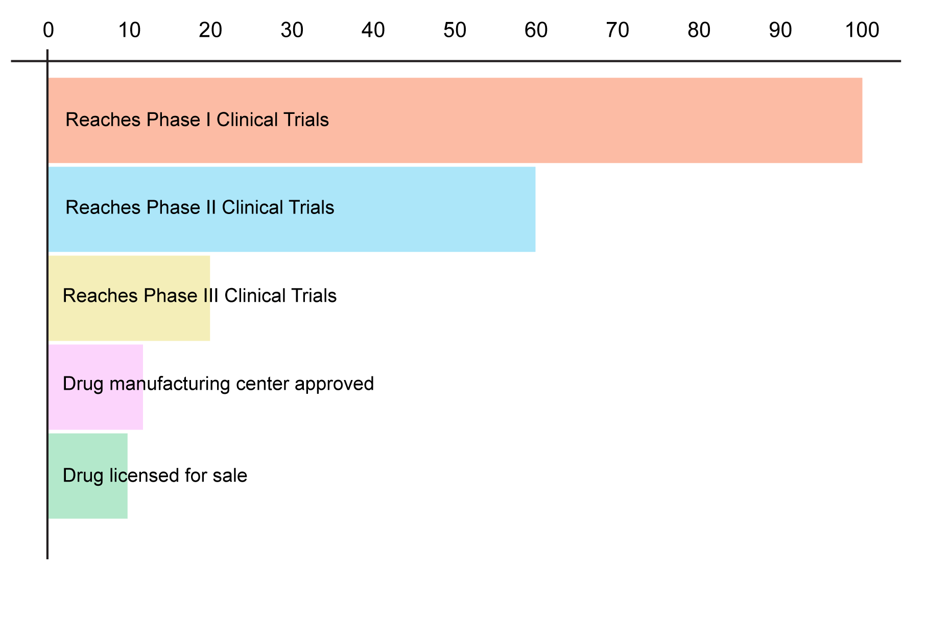 More than 90% of drugs that are safe and effective when tested in experimental animals ultimately fail in human testing. Credit: Redrawn by Anne Corwin from Nat Rev Drug Discov 3(8):711-5.