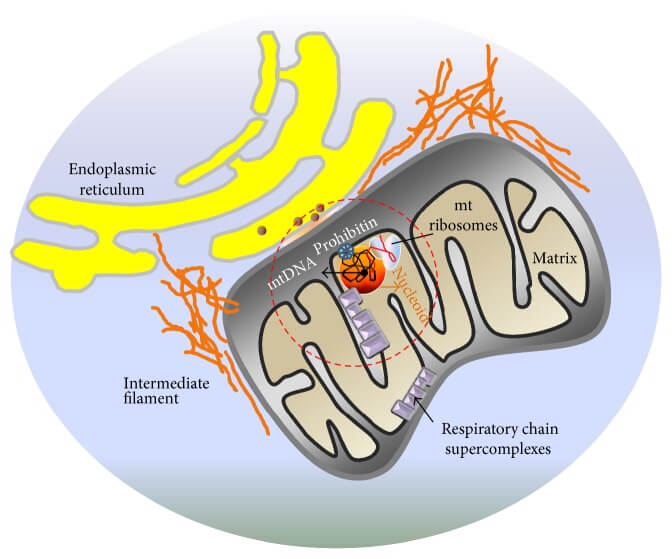 The first is the sheer amount of oxidative damage[1] in mitochondrial versus nuclear DNA. The mitochondrial DNA’s exceptional vulnerability to free radical damage results, first and foremost, from its being located so close to the mitochondrial energy-production machinery, which is one of the major sources of free radical production in our bodies.[2] Most of these free radicals are generated in the innermost chamber of the mitochondria (the matrix), which is also where the mitochondrial DNA is located. Free radicals are, by definition, unstable; they therefore don’t get the chance to travel very far, but instead react with and damage whatever they bump into first.