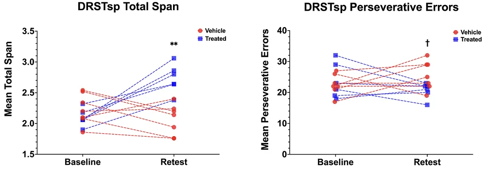 MRI scans were conducted at baseline and every six months during treatment to monitor changes in white matter integrity and functional connectivity. For cognitive assessments, the team used two tests: the Delayed Non-Matching to Sample (DNMS) task and the Delayed Recognition Span Task – Spatial (DRSTsp). The former evaluates recognition memory, while the latter assesses spatial working memory.