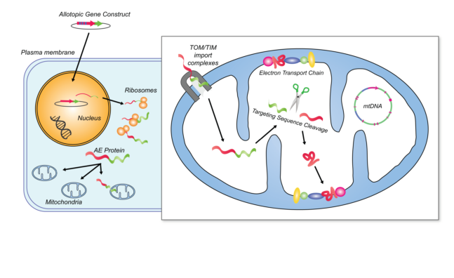 Allotopic expression. Credit: Human Gene Ther 19(12):1335-48, modified by Anne Corwin.