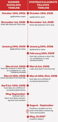 Host labs and students work together to decide on a start and end date before onboarding paperwork is finalized. In the summer, this is a 10-12 week expectation, and for postbaccs, we expect 9-10 months.